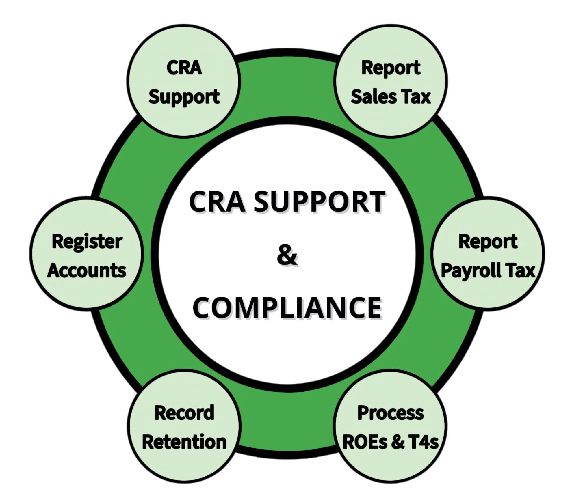 We handle many of your compliance needs, from Sales Tax Filings to Payroll Taxes, and we help your business meet CRA requirements. We also provide CRA representation and often recommend it, which allows us to call CRA on your behalf and file right from your business account!